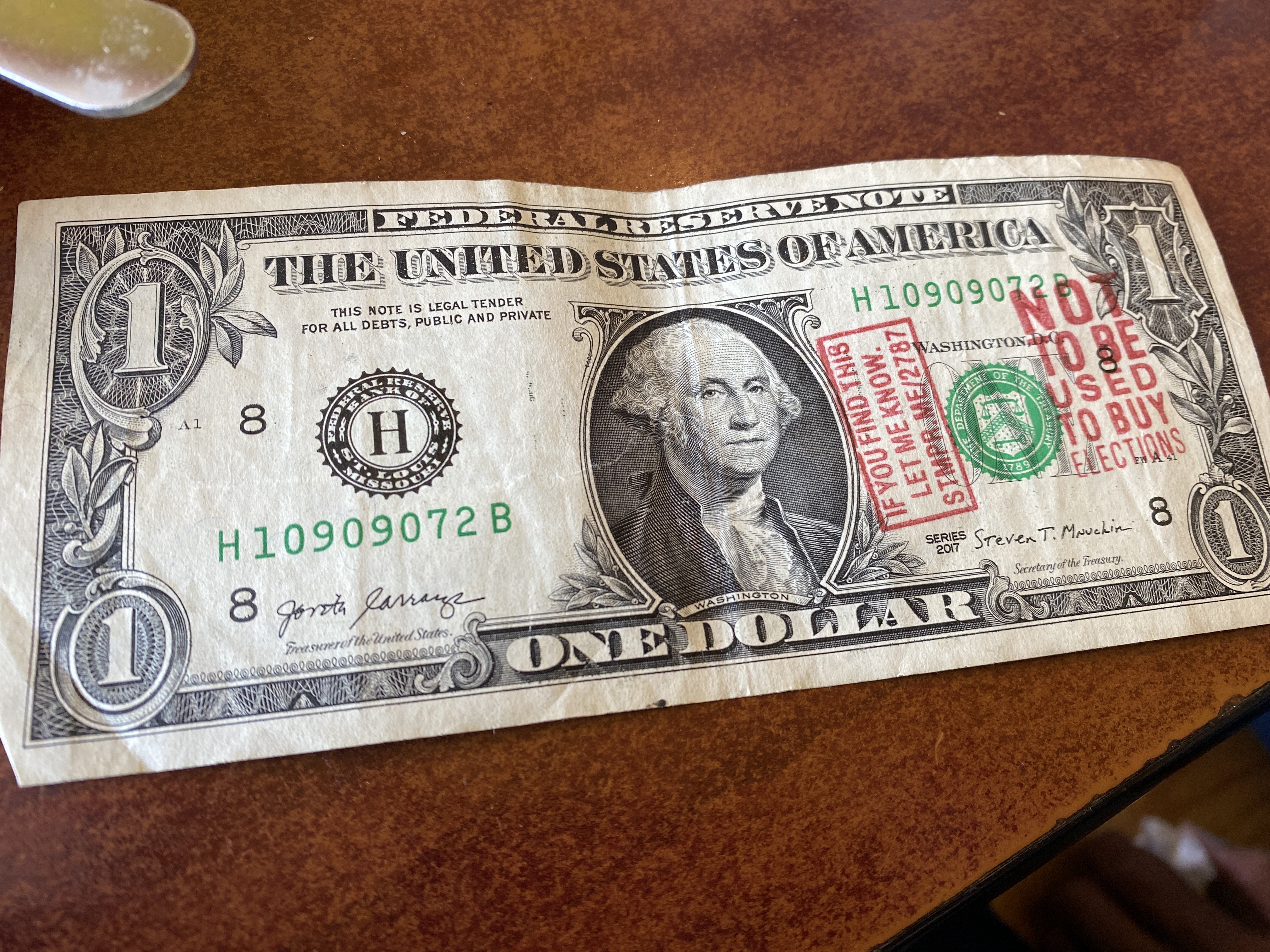 | 7/28/2022 | St. Louis, MO | I received this bill as change at a parking lot by the City Museum in St. Louis. | 1 | |
