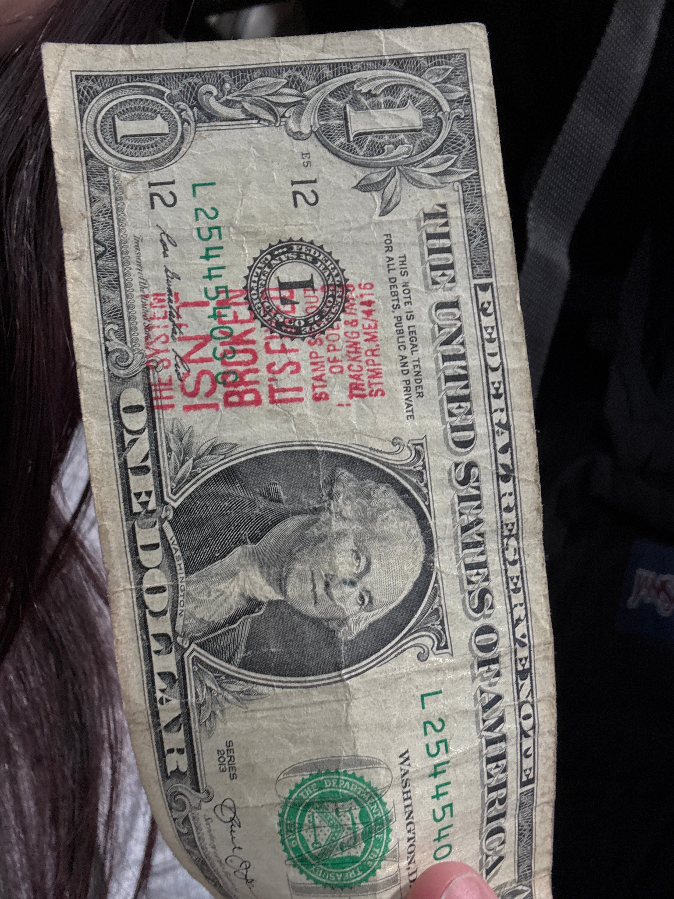 9/26/2025 | Mesa, AZ | I work in retail, and while I was counting the register, I kept passing up this bill until I noticed it said something. | 1 | View Bills |