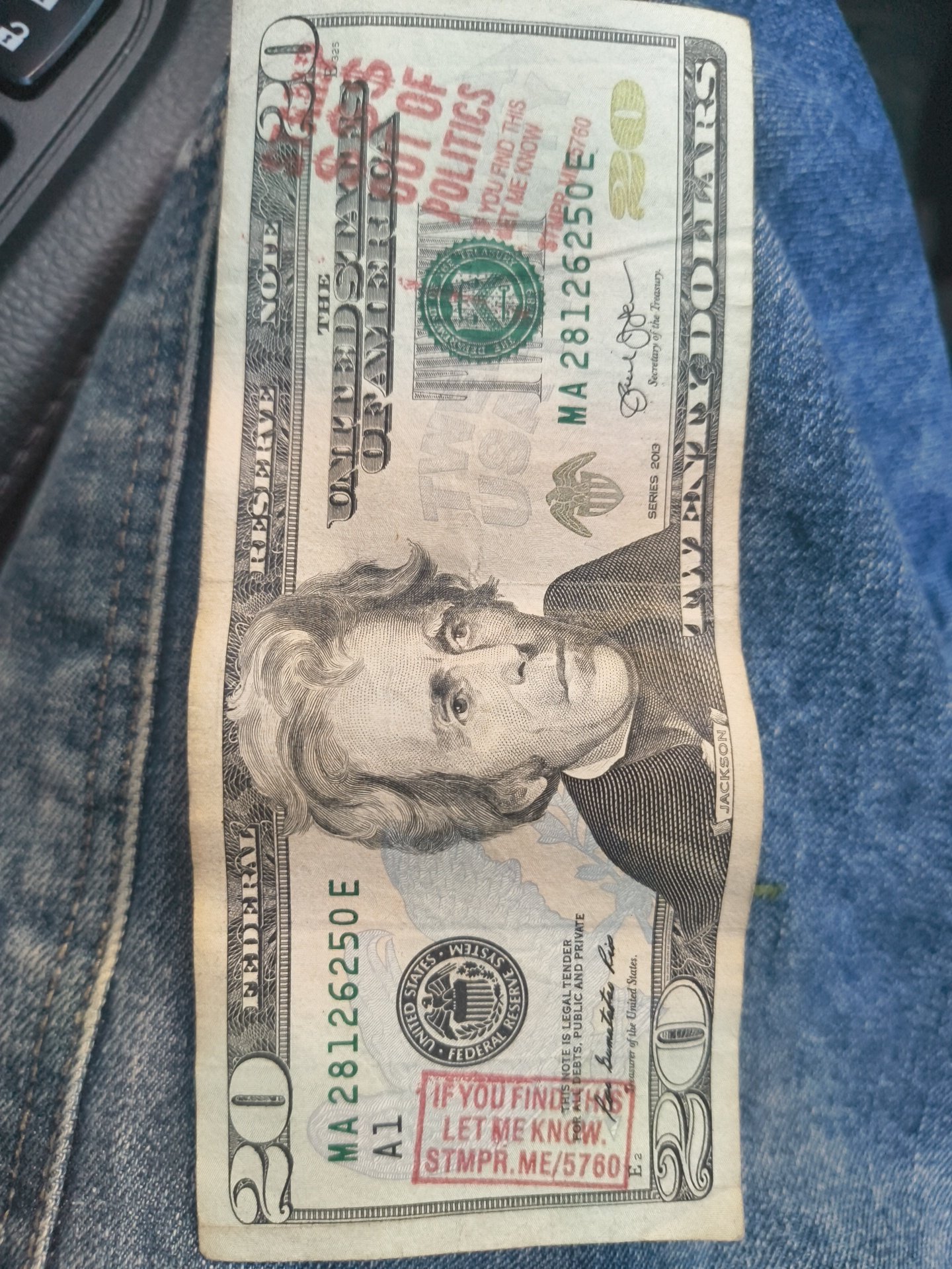 | 7/30/2025 | Lewes, DE | Got it back as change from a store. Put it in my wallet to read later. Forgot about it. Went to a dispensary in MD and paid with it. The cashier noticed and read it, and I asked for it back because I hadn't done anything with it yet. Will spend soon! | 1 | |
