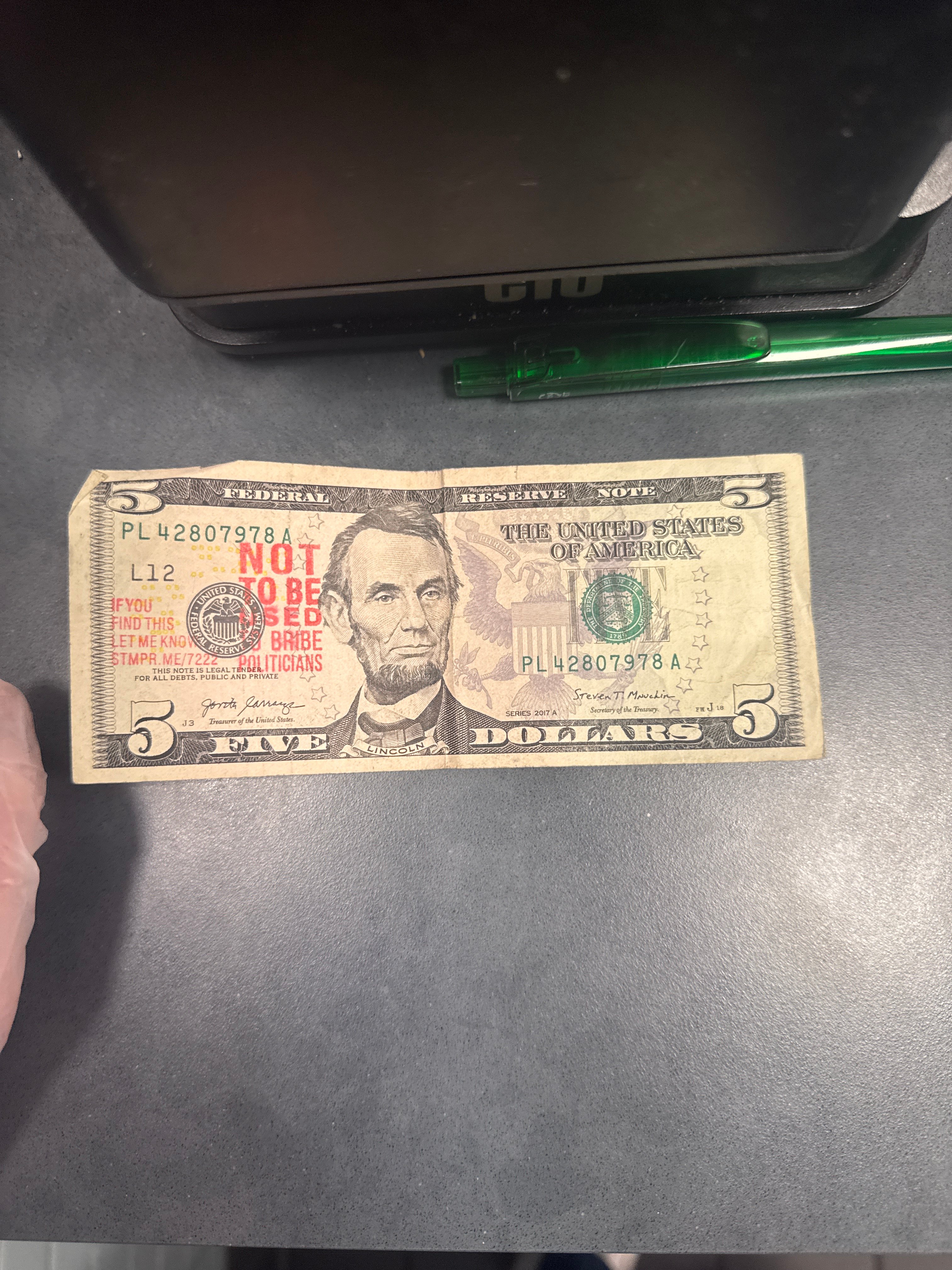 | 8/4/2025 | Lawrence, MA | A drug deal, a gentleman had purchased crack and gave me this bill! | 1 | View Bills |