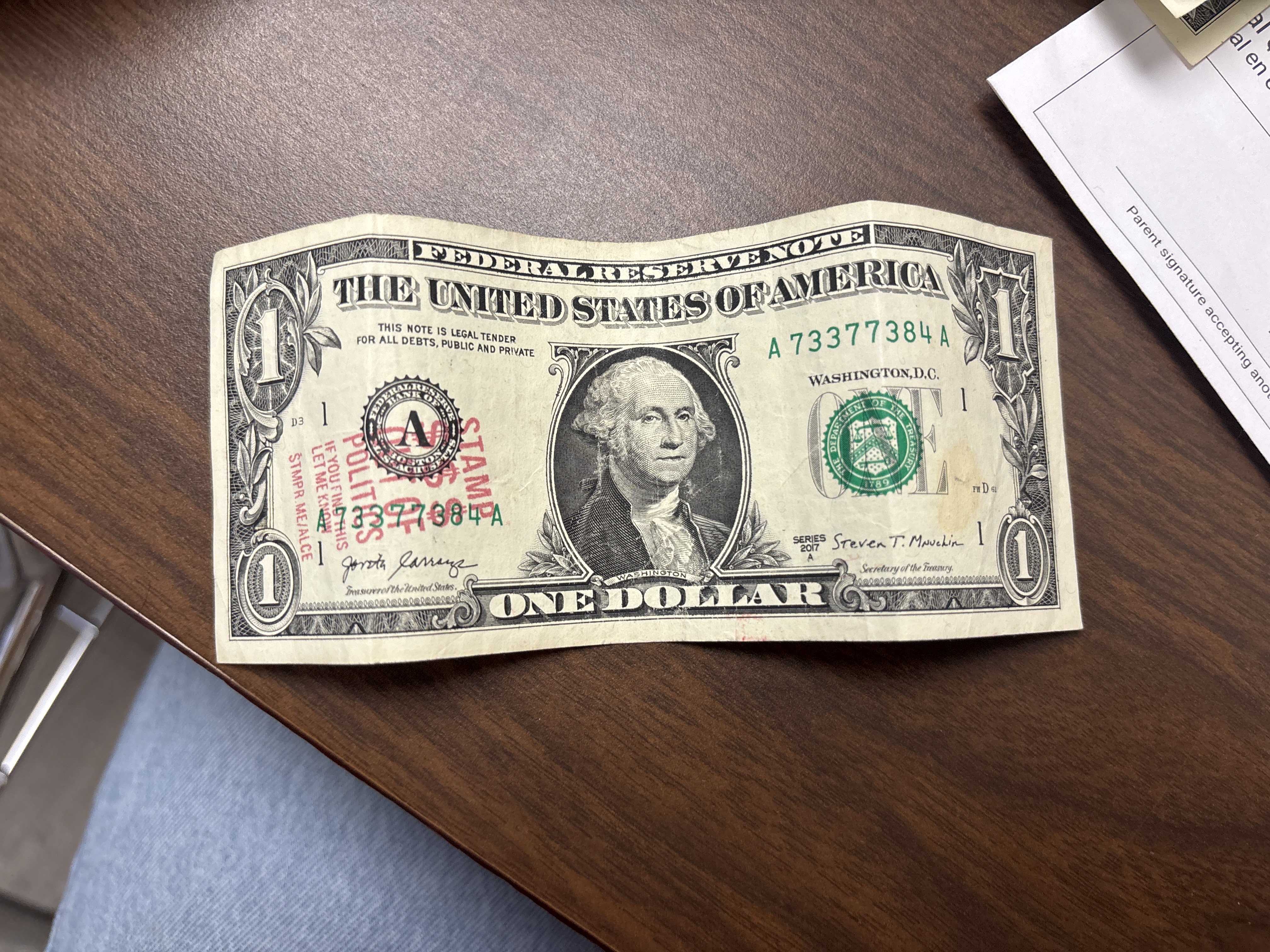 | 8/21/2023 | San Antonio, TX | I was doing a transaction and got it from a random person . | 1 | View Bills |