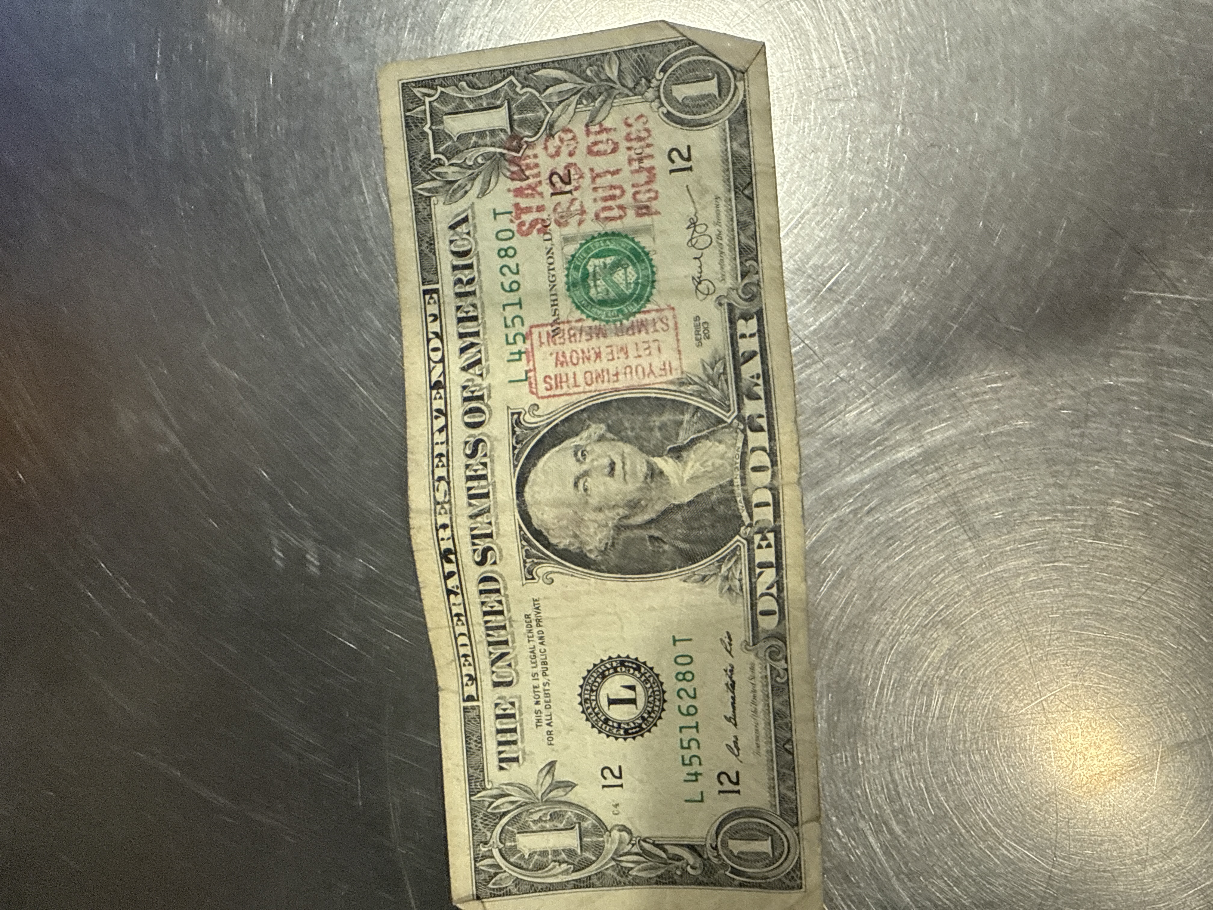 | 4/20/2024 | Portsmouth, NH | I work at Aroma Joe’s and someone payed for their food with this dollar. | 1 | View Bills |