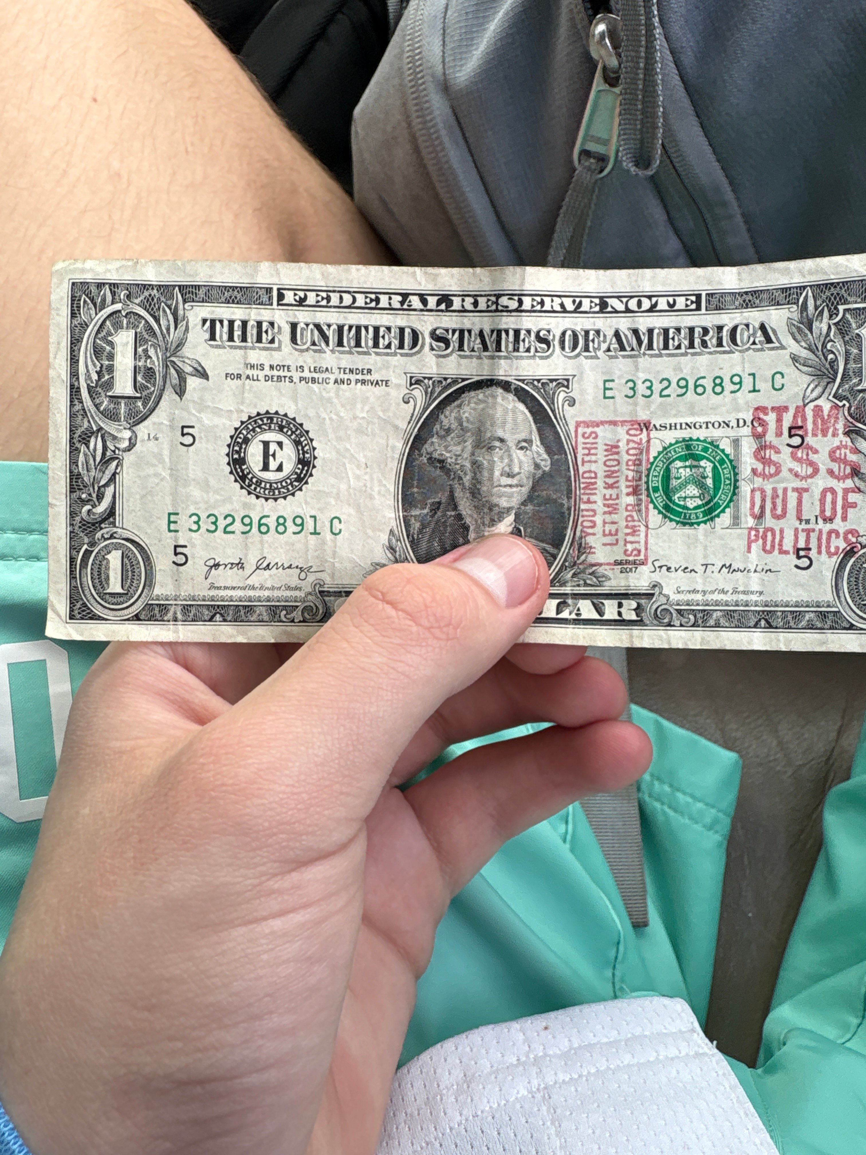 | 9/18/2024 | Tulsa, OK | Found in Tulsa, spending today. GET MONEY OUT OF POLITICS! | 1 | |