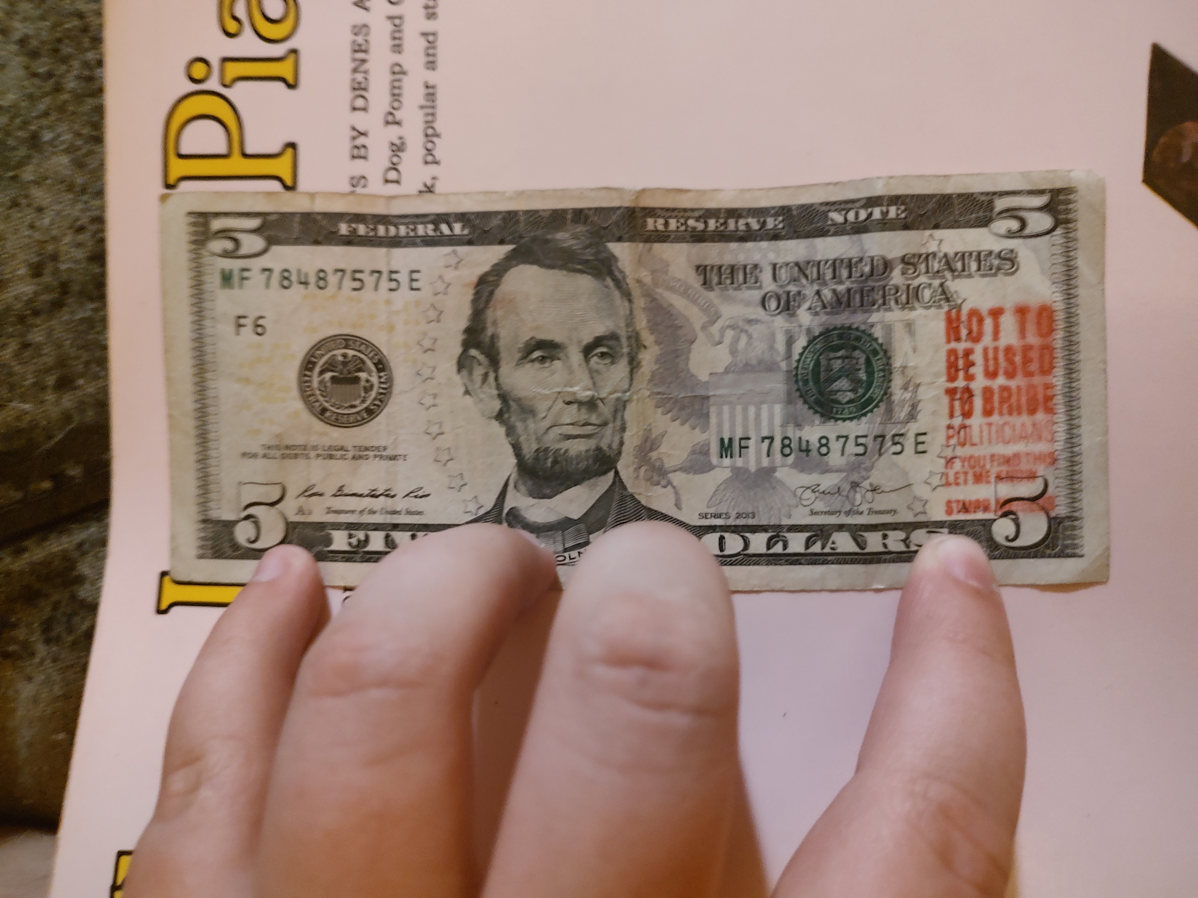 Possession: I got this bill at a band competition (chase highschool), after getting change for my meal.