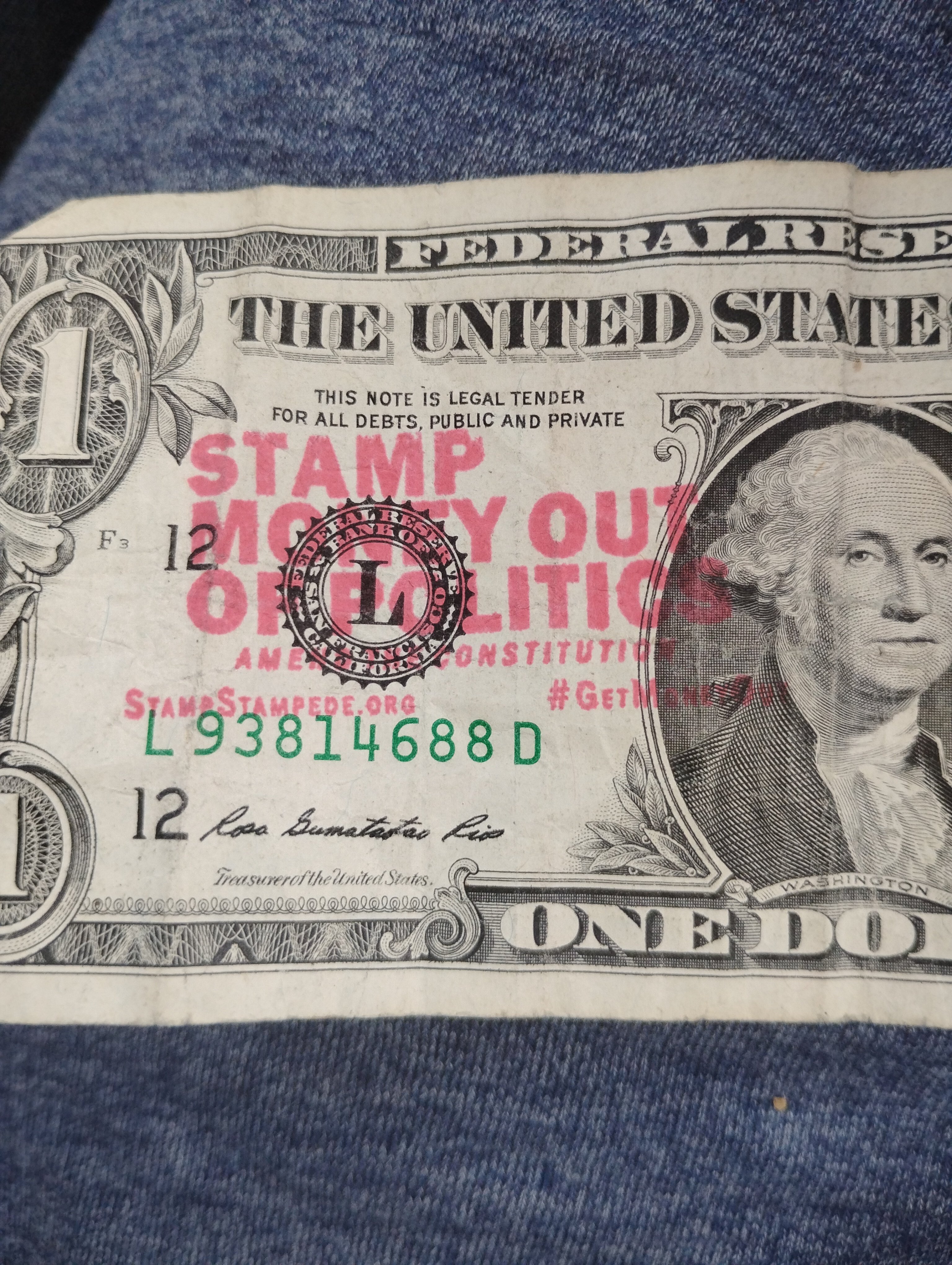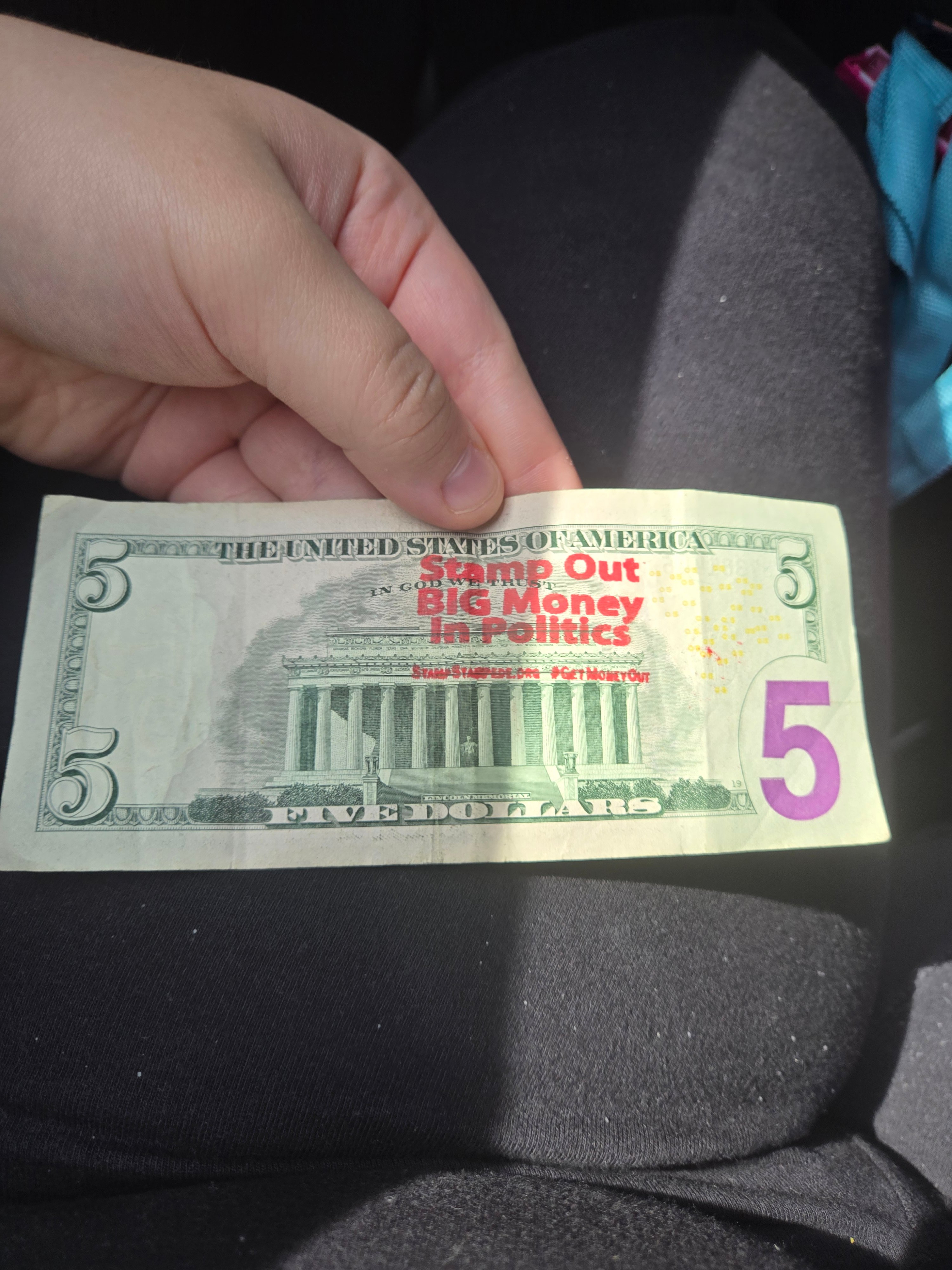 8/17/2025 | West Mifflin, PA | Organizing money in my wallet and found a 1 dollar bill with the stamp “not to be used to bribe politicians” unfortunately cannot read or dicipher the user name | 1 | View Bills |