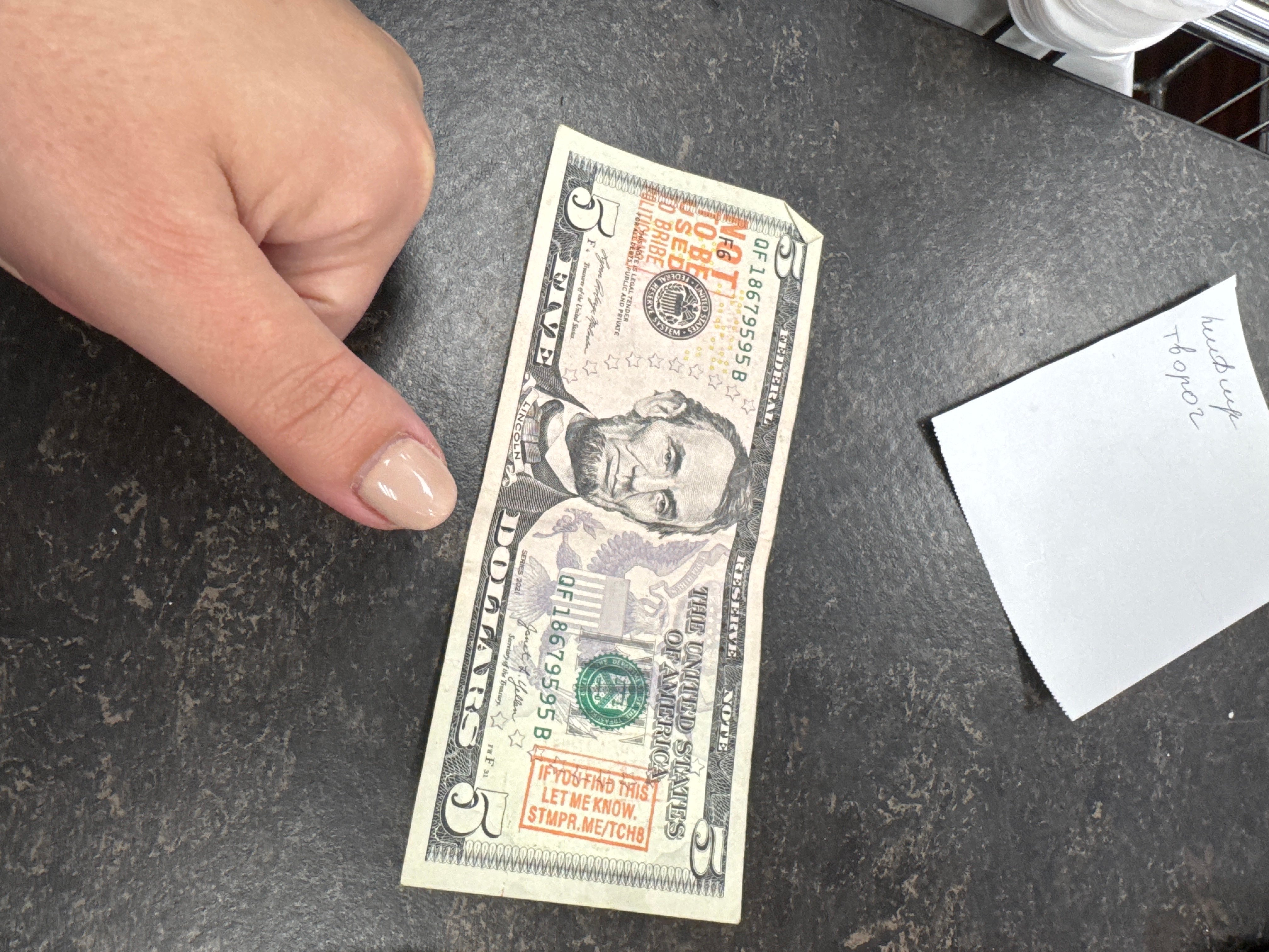 | 4/30/2025 | Bakersfield, CA | Got handed this bill as payment at fast food restaurant | 1 | |