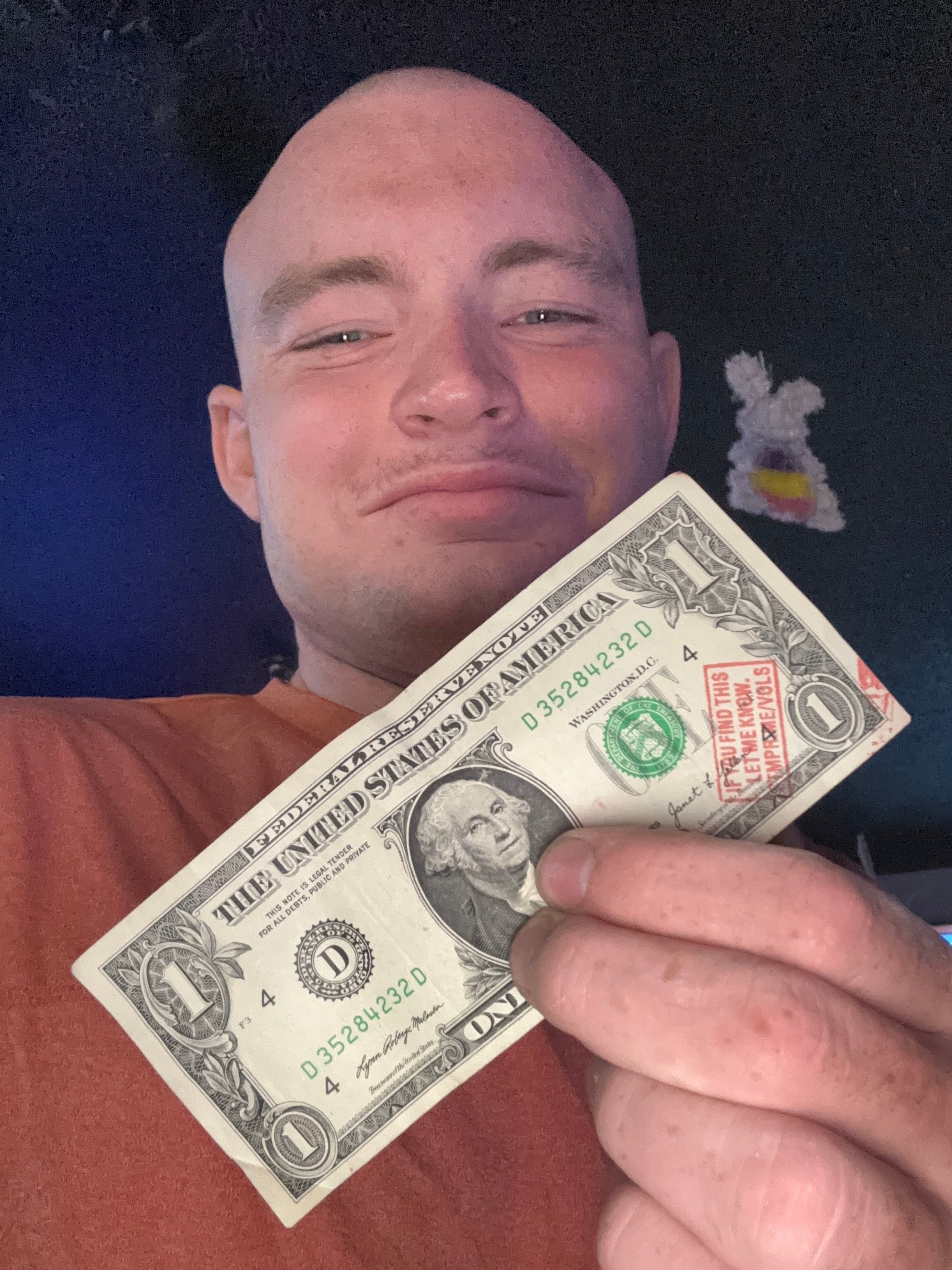 | 8/15/2025 | Knoxville, TN | I bought a case of beer at my gas station near my house in the change they gave me back was a dollar bill and some other change but this bill the dollar bill had a stamp | 1 | |