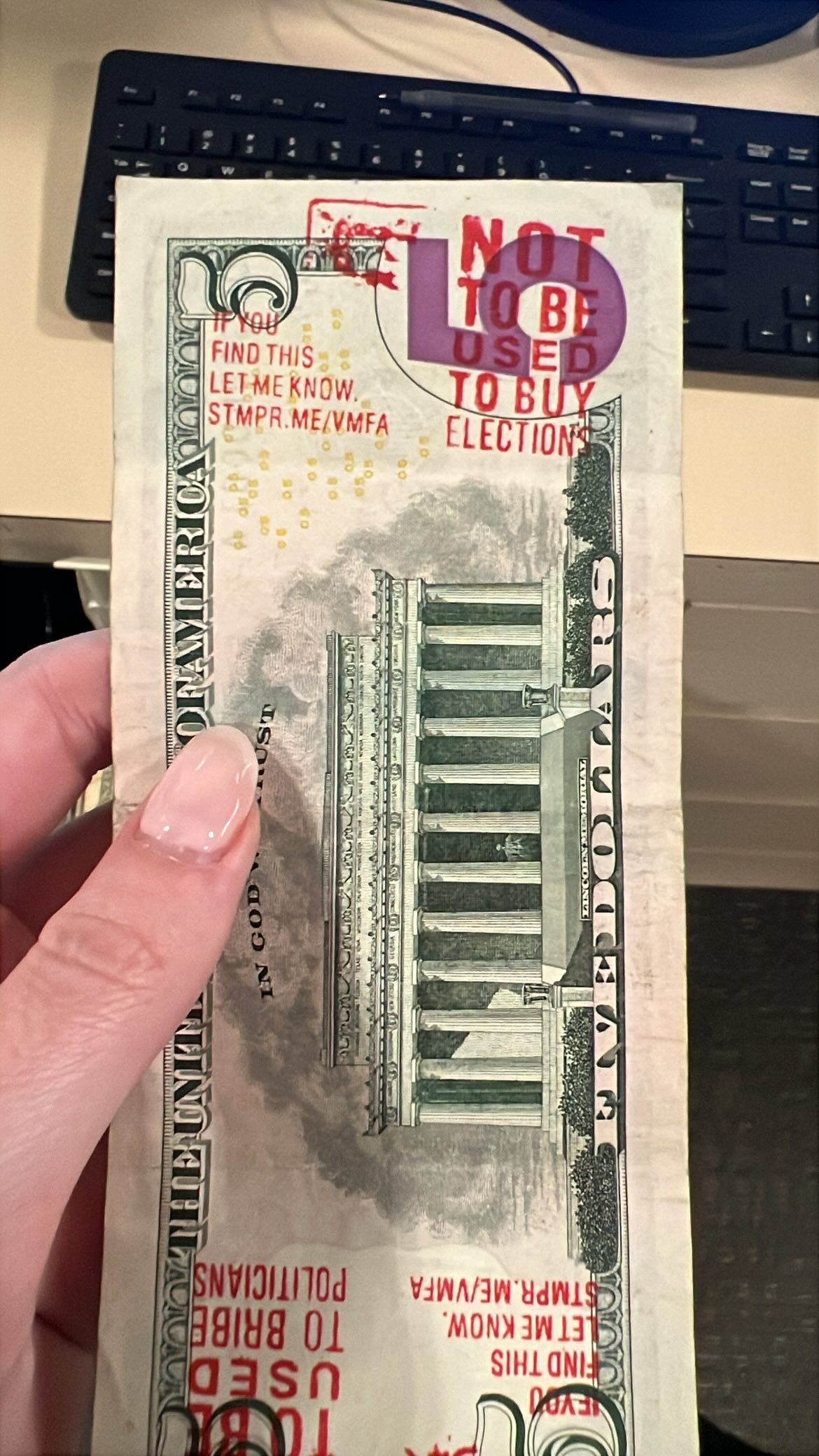 2/11/2026 St. Louis, MO I am a teacher who is running our school store in honor of Black History Month. A student used a $5 bill with this stamp to buy something today. My students were interested to find out if this was a real bill and a real website. 1