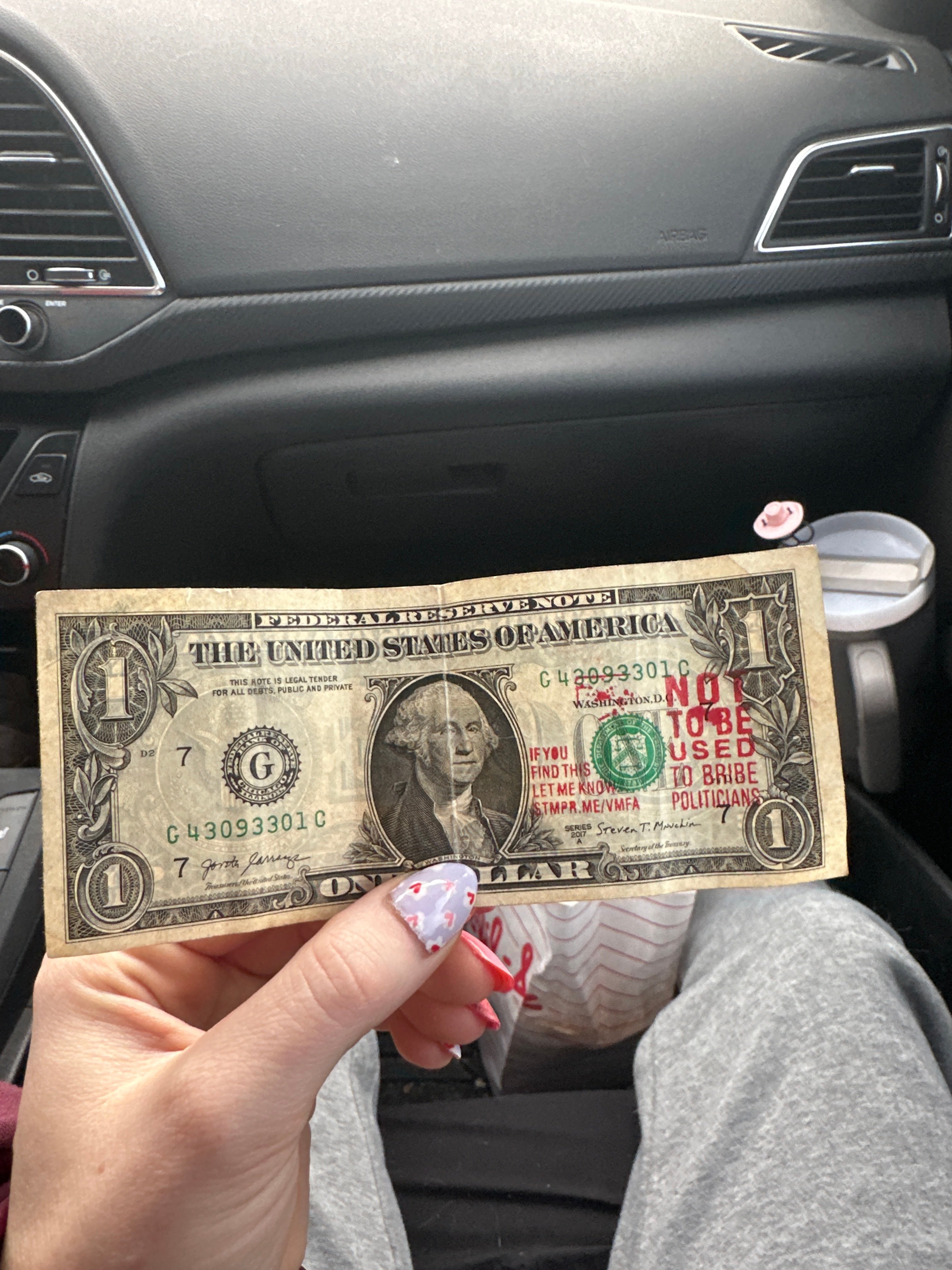2/3/2026 O'Fallon, IL Got it randomly from my grandma and didn’t notice it until tipping at dennys. 1 View Bills