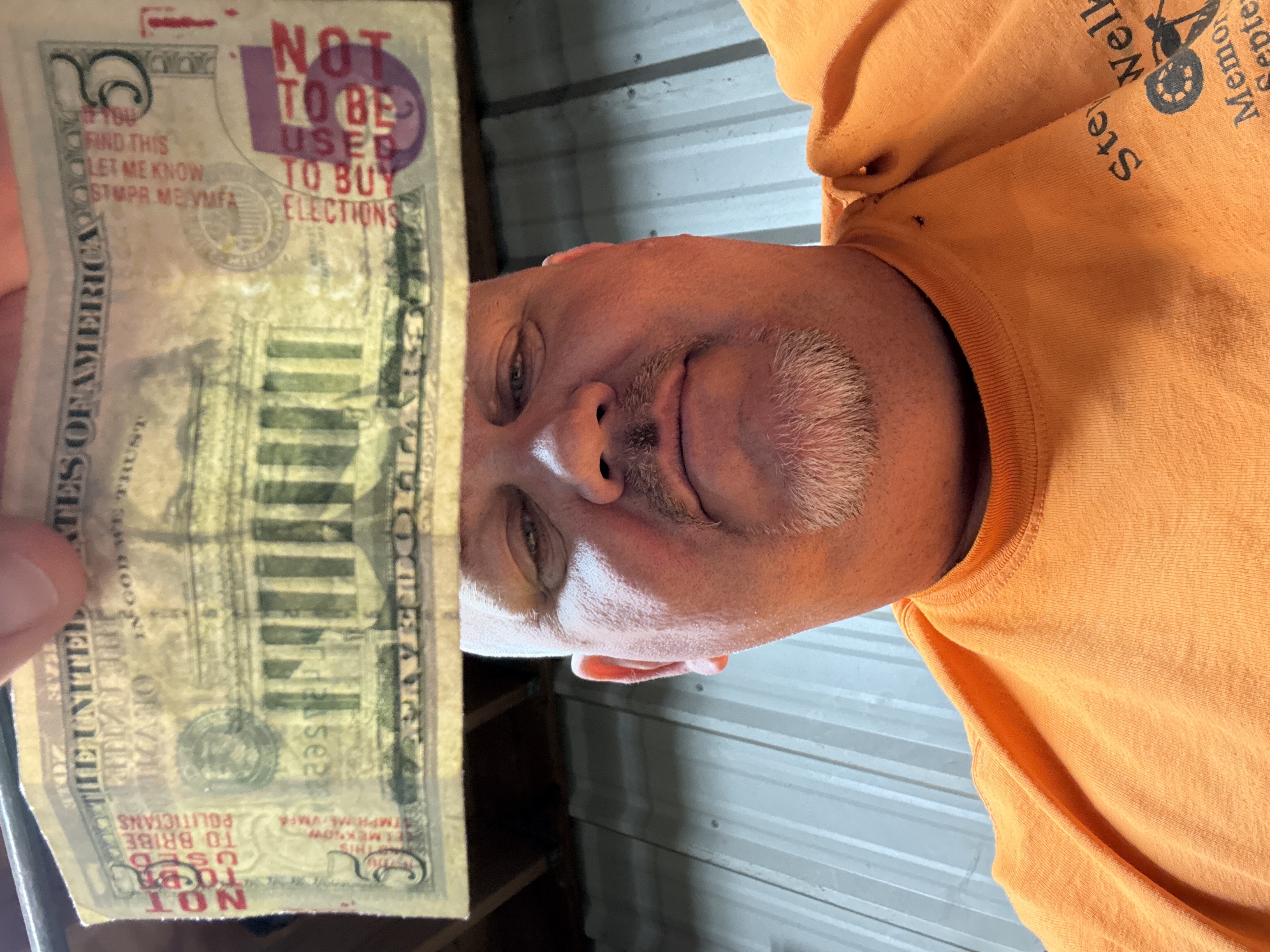 | 4/9/2019 | Tulsa, OK | Gas station. To my Marine Brother, thank you for trying to keeep our congress from being bought. They are quick to want to go to war, but they don't want to fix those who come back broken. | 1 | |
