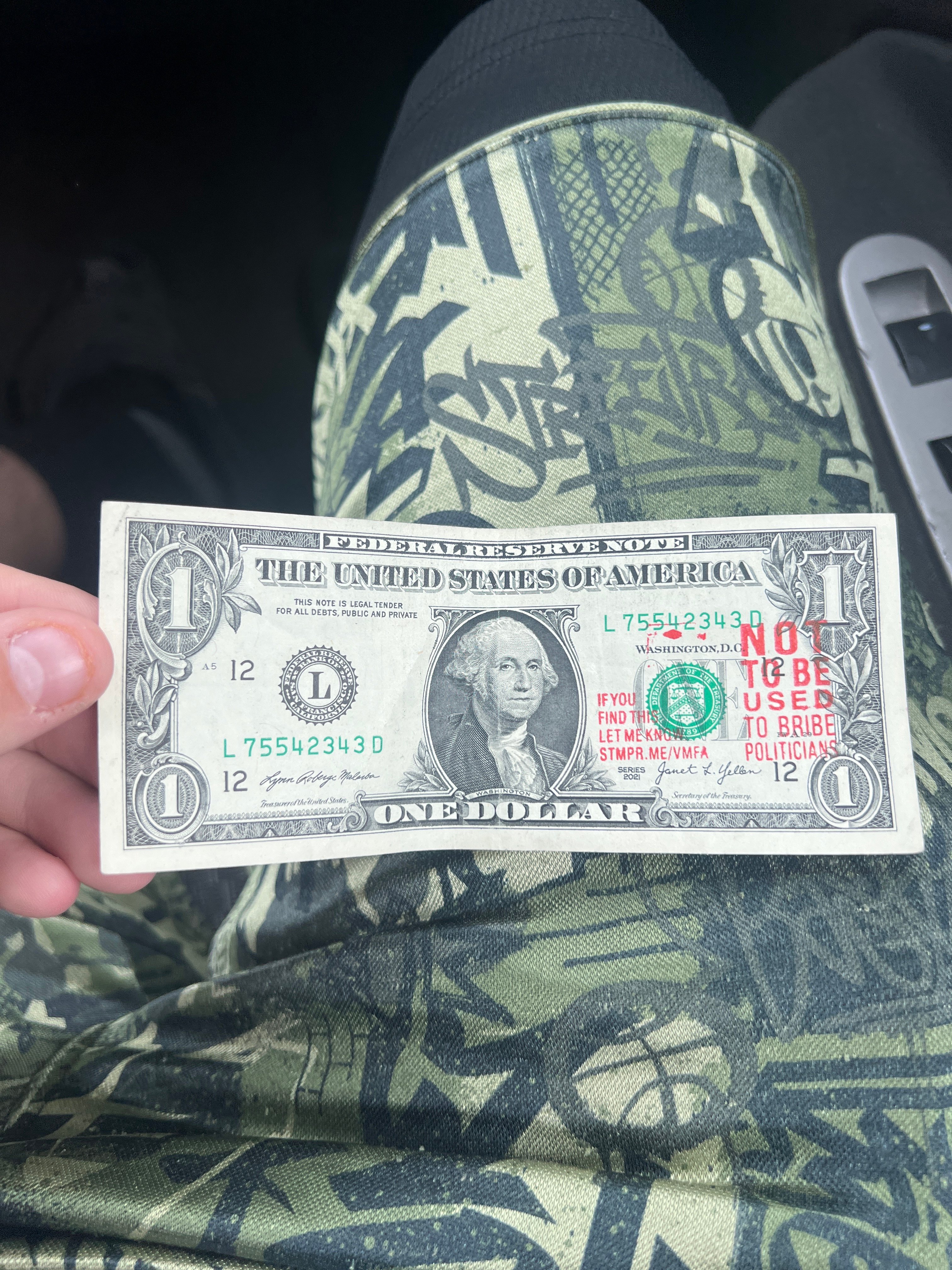| 4/4/2026 | Gilbert, AZ | Well I work at McDonalds and needed to break a 20 so I got all 5s and one of them happen to have the website on it | 1 | |